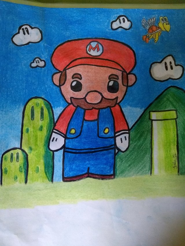 Nouveau petit dessin de Mario Bros fait avec de la pastel pour que ça soit plus « enfantin »